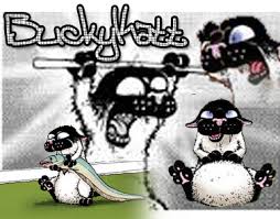 This week has bummed me out along with everyone else in the United States. One thing has brought a smile to my lips every morning- Bucky Katt and Satchel Pooch. Bucky the cross-eyed Siamese cat will take on anyone, even though he is only 20 inches tall standing up right. This week he is studying children's day time TV characters.